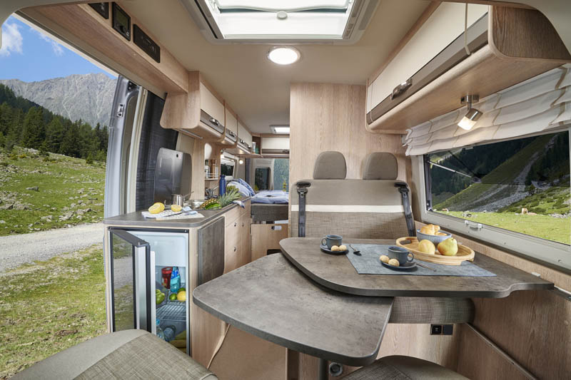 Das variable Raumkonzept macht den Summit 600 besonders flexibel. Die komfortable Sitzgruppe ist mit ergonomischen Polstern ausgestattet und kann durch einen Zusatzsitz zu einer Dreierbank erweitert werden. Damit reisen bis zu fünf Personen sicher und bequem.